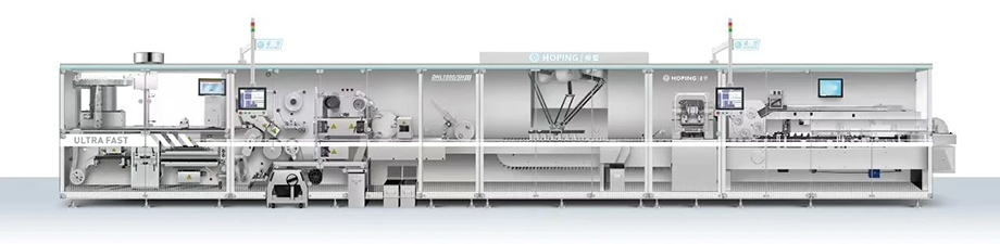 DHL1000/5H Ultra Fast 智能全伺服高速泡罩装盒一体机,超高速1000板/min高效包装体验,全新升级的智能集成系统深度融合智能算法与技术创新,为药品包装提供高效、稳定、低碳、安全的全新解决方案。2/3/4列通用格栅输送系统(无需调节),支持多规格产品快速切换;模具定位及快速更换技术(配方复位记忆功能),更是将换模时间缩短至1小时内,完美适配小批量定制化需求;搭载成型缓冲恒力系统,确保生产全程恒力输出,保障泡罩成型稳定;三段式预热系统,阶梯式递减温度预热,既保障包材受热均匀,也实现了能耗下降约10%;水冷恒温系统采用双循环流量独立控制技术,即使设备长时间高负荷运转,也能保持绝佳稳定性;分区密闭系统通过独特的压差隔离设计,有效避免裸露药品包装安全风险,确保每一板产品都符合高品质标准;可支持独立选配压痕工位、光标对版系统、热量收集系统等可灵活扩展功能,轻松应对复杂工艺场景。leyu-乐鱼(中国)官方网站_leyu.comDHL1000/5H Ultra Fast成为您智能包装的核心引擎!